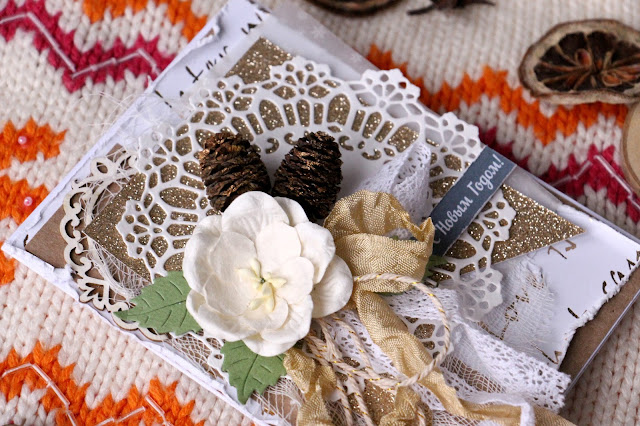 Я просто в восторге от декабрьского кита - очень мне нравятся эти флажки и шишки. И поэтому так легко сделалась эта новогодняя открытка.