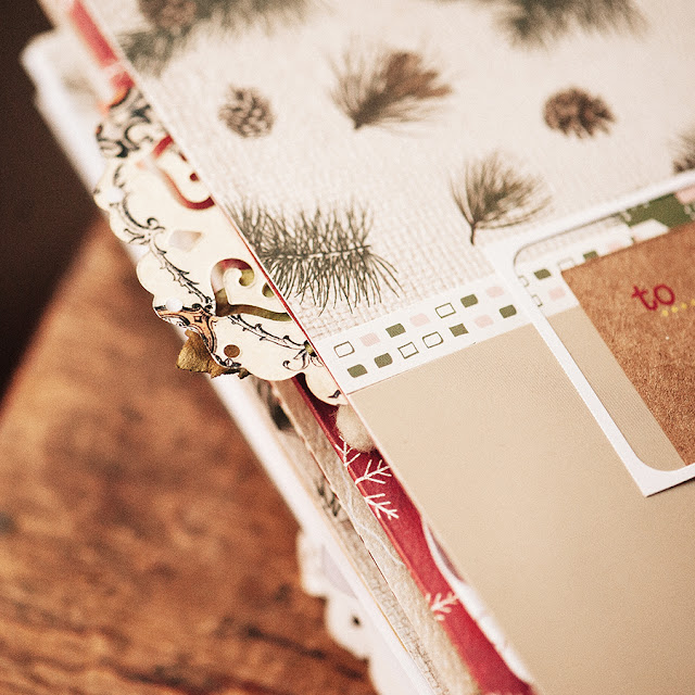 В ноябре нам выпал просто потрясающе органичный, стильный кит на новогоднюю тему с разнообразными украшениями. Недолго думая я решила сделать альбом, без каких либо дат или ограничений, просто место для фотографий, место для записи различных напоминалок, и добавила отрывной календарик на следущий год.